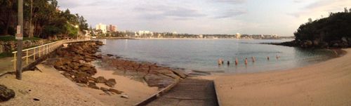 13 swimmers enjoyed a relatively light ghost train lap this morning, below is a photo that Stephen took of the brave and beautiful at Shelly at 6.43am 🙂