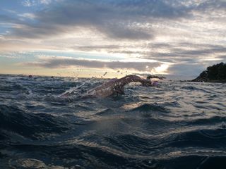 The colours on the horizon created a beautiful backdrop as we swam across the bay this morning…
