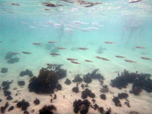 A couple of schools of fish watching us watching them right in at Shelly Beach