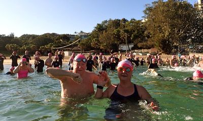 Over 200 pink capped swimmers plunged into 18.4 degree water this morning to start off the weekend in the best possible way. Megan summed up what she loves about this swim later to me in Havana Bar. ‘It puts me in a great mood for the rest of the day. I’ve just swam my 5th swim and am addicted. Everyone is so positive and happy!’ Lovely Elizabeth’s birthday today. We know she feels the same way. She’s barely missed a swim since she started about 18 months ago!