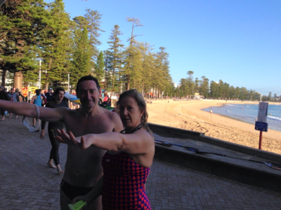 It’s Lisa and hubby’s first swim today. They have just moved from the UK and are loving Manly!