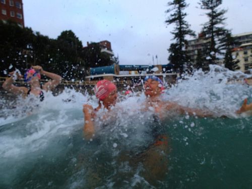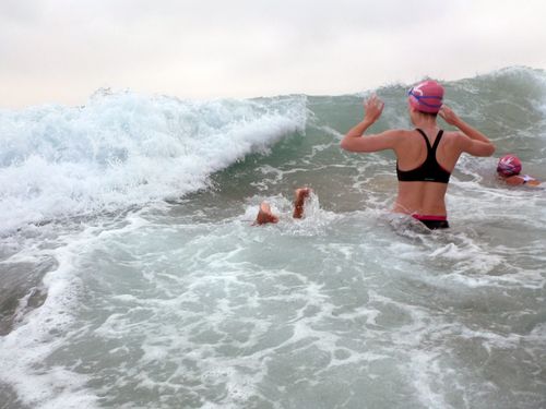 It was like peak hour traffic in the water this morning! We all swam nice and close together and enjoyed a not of a wave 🙂