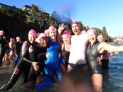 And these… are some lovely people who are facing their fears, ocean swimming and raising money for Cure Cancer with CanToo. Annie Crawford, the founder of CanToo is here, another inspiring, caring amazing lady like our own Jules Isbill.A big ‘YAY’ after the swim! We did it again and doesn’t it feel good!
