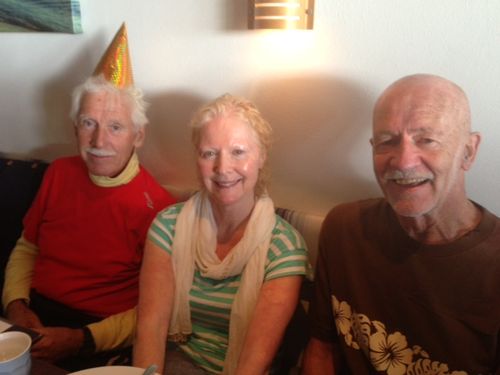 Greg and Christina ‘found’ Mary at The Skiff Club last night and persuaded her to come along! Wilf the Triathlete is on the left (he’s done 120!)