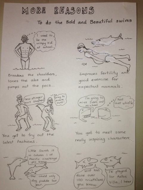 You took yr time!!! 12.30Pm!!! love the cartoons… Great fun blog..sounds like great swim!!! I missed it…slept thru my alarm!!