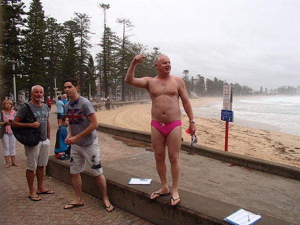 There are certainly some colourful characters in the Bold & Beautiful swim squad but this one certainly takes the cake. He was seen around Manly on Australia day fighting crime with his trusty pinata but no one seems to know his real identity…I doubt we will ever find out.