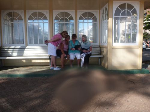 These cheerful swimmers are enjoying one of Mauricio’s YouTube film clips from his B&B swims.