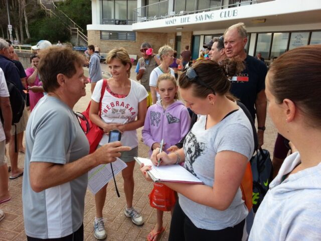 Every Saturday during summer there will be aย 6kmย swim โ usual route is to Freshwater and back; then once a month there is aย 10kmย swim โ this is to South Curl Curl and back.ย However, the final route depends on conditions that day so it is a good idea to arrive a little early to have a briefing from the designated swim leader. ย Both swims kick off at 7am.
