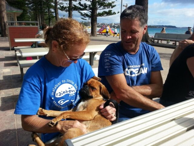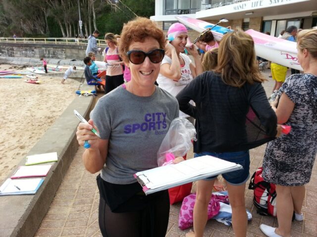 We headed off towards our common goal, although I found myself being separated from the group and getting closer to the shore passing the North Steyne surf club I was a sea of emotions thinking I can’t do it, its to far, not enough training etc part of me saying just head for the shore ! nobody will notice, where is everybody ? ? ? finally seeing the peloton way off the headland all waiting for those who were lost or just stragglers. From here we were advised to head for another yellow building above the Freshwater pool, things seemed to get easier as I was off shore and more or less out of the choppy conditions. At Freshie the group came together again for the final leg home…… the downhill run ! no stopping or waiting now ! I headed off , the North Steyne surf club was 1 km from our goal of a “6km” badge ! what grown adults will do to pay $10 to get a scouts/girl guides proficiency badge, but we do it with gusto ! !