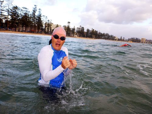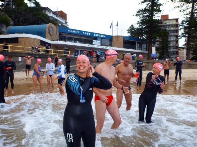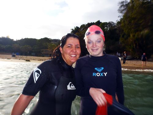 Maria N was excited to be celebrating her niece’s birthday with her by swimming with us from Shelly to Manly 🙂 Happy birthday !