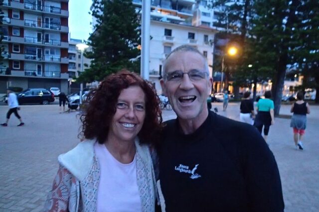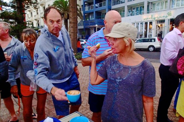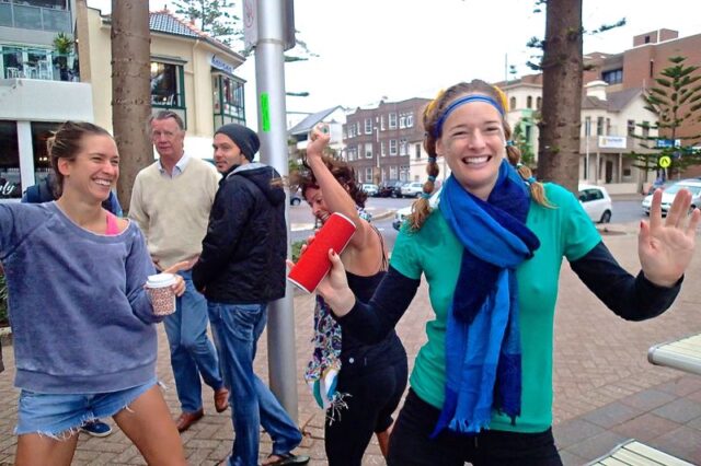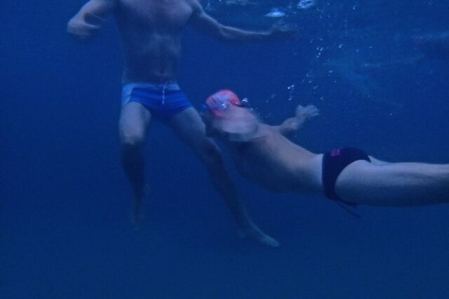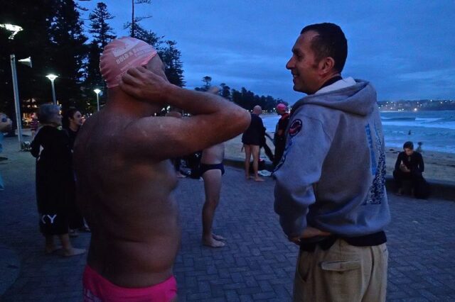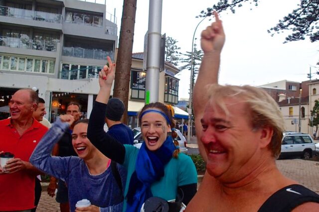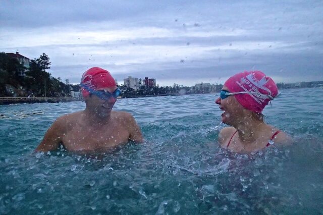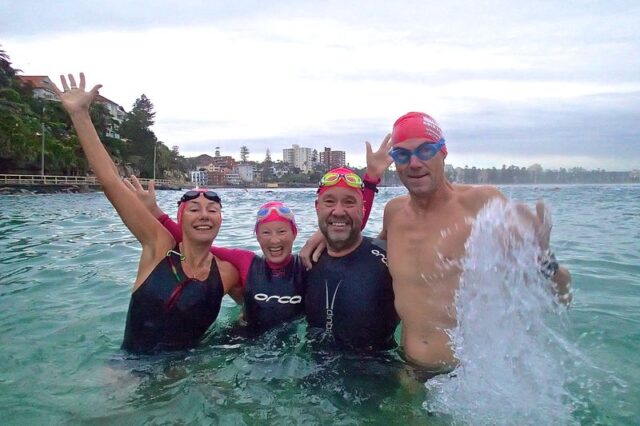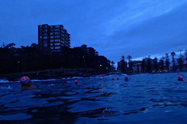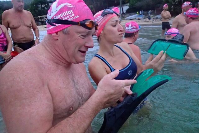 Well-deserved! Midge is amazing – out very early every morning, usually back from her bolderdash or first swim to Shelly before the Drinks Express starts! Always cheery and glad to have company. She lost her goggles in a wave this morning, so she swam in the pitch-black without goggles!
