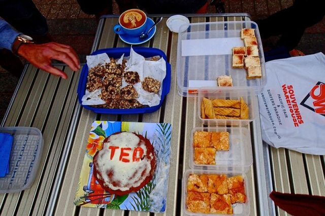 The VIP area was full this morning..  Neil managed to hold a B&B cap but it did burn his fingers a little