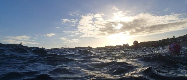 The ocean was a little choppy again today, not as bad as yesterday, so only 2 swimmers did the Bolderdash. Loads of you did The Drinks Express at 6.30am. I counted about 38!