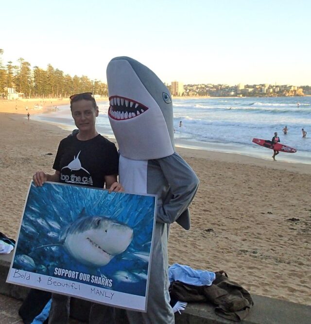 Here we are this morning showing our support for the protest against shark culling in WA!