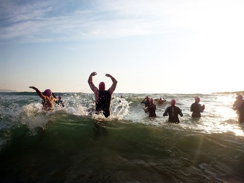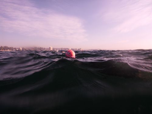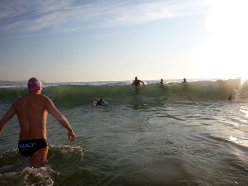 We have a 2k ocean race this Sunday – no ocean practice since the last one. Our next swim after that will probably be in a chilly Polish lake – easy to take the pink caps, but not so good with the cameras.
