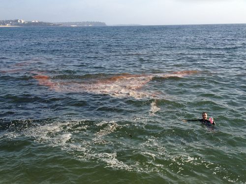 The non-toxic red algae has made it’s way to Manly though, at half way beach. Thanks for the photo Sharon