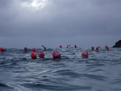 Clouds will not stop the A team swimming fast. They don’t need to see the water. It is all in the feel of the water.