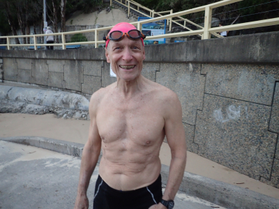 A photo by me at the point means that I had to impose on a kind swimmer to take the Shelly photos. Today that was John Kelly. And that was on top of his Let’s Go duties. Exhausting