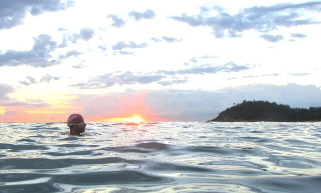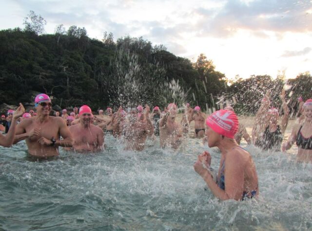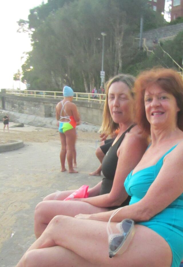 Beautiful blog Andrew, love the words and the photos…What a stunning swim today underneath that colourful sky. Love your pink cap at The Point photo especially. Lovely swimming with LSA and Alison, as charming as her son Dr John! So many sea lice itches but worth every scratch!