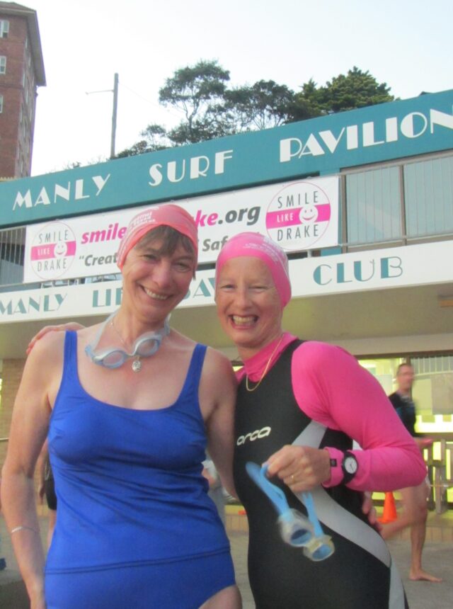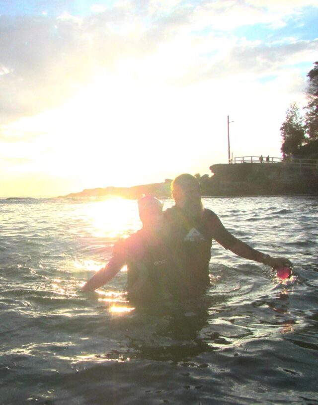 Two of the BnB regulars making a connection and sharing the swim back to Manly.
