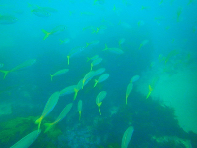 And for Ian, an underwater shot with at least some visibility. And to steal a line from the new song “Yellowtails and Silversun you best swim their way and watch them shine And watch them watch the morning come”