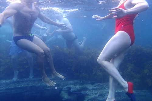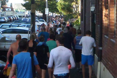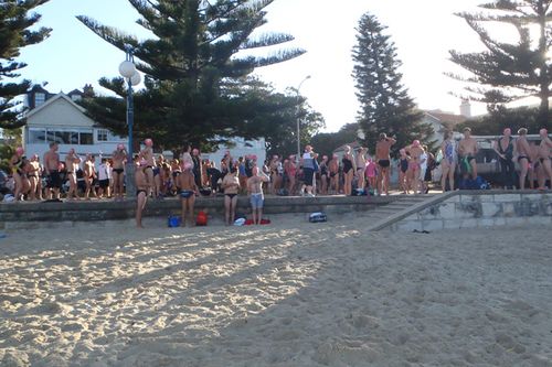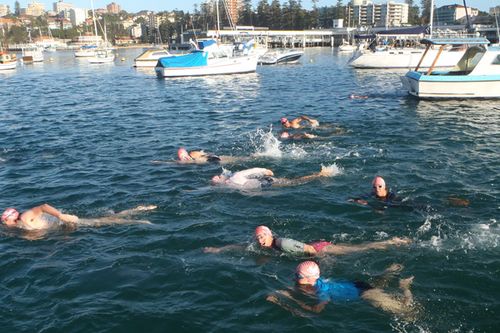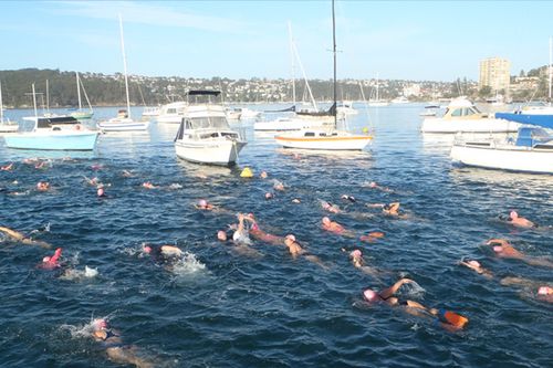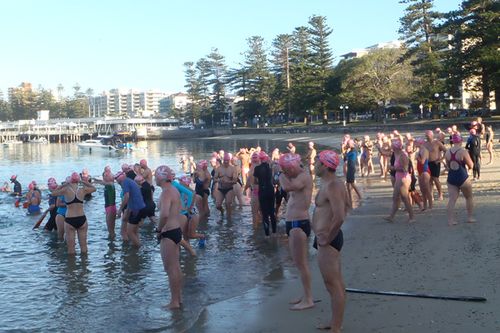Lots of swimmers all eager to get wet in Sydney Harbour.
