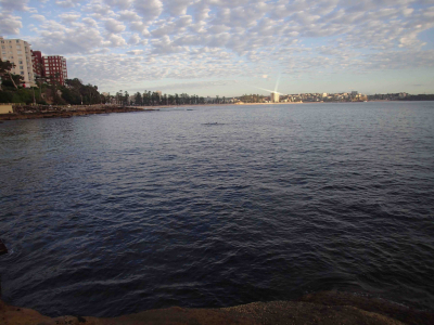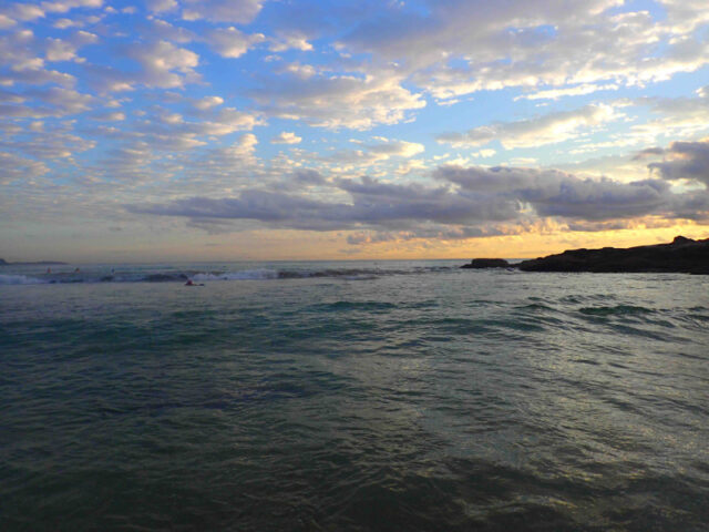 With a low tide and a touch of last weeks East swell, the new Southerly ground swell made for some nice small waves further up the beach but even the low tide couldn’t convince them to break at the point. None of that mattered this morning as the bathtub 23 degree conditions made for ideal swimming.