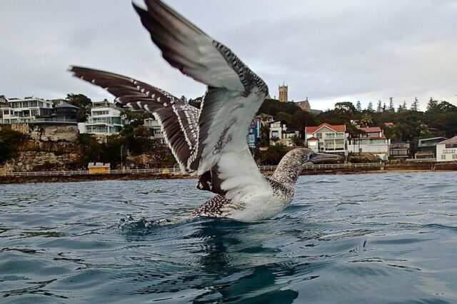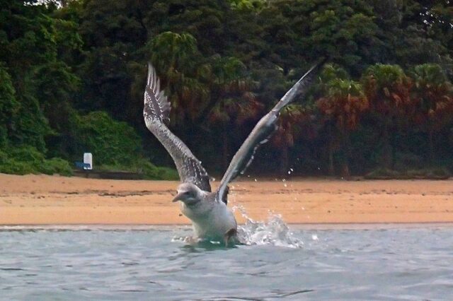 These birds are plunge divers and spectacular fishers, plunging into the ocean at high speed. They mainly eat squid and forage fish which school near the surface. It has the same colours and similar appearance to the Northern Gannet.