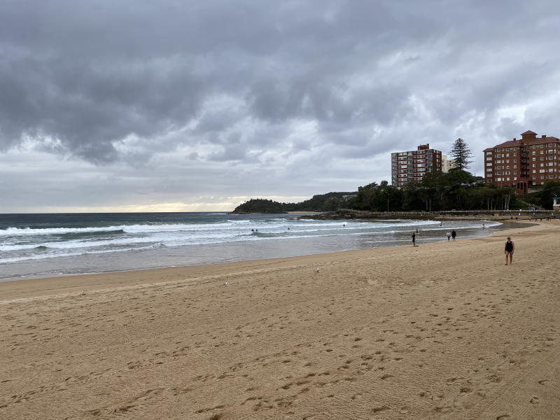 Clearly the forecast of rain and big swell coupled with the Monday vibe had put off the crowds today as only the real regular swimmers turned up.
