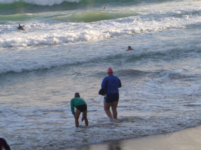 6am: gathering and departure of the early morning squad. I always admire their courage and commitment, not only to be up at such an early time, but more importantly, to voluntarily serve as water testing guinea pigs, reporting back any hazards (blue bottles, jimbles, rocks, rips, etc.) to the waiting crowd at the Surf Club,