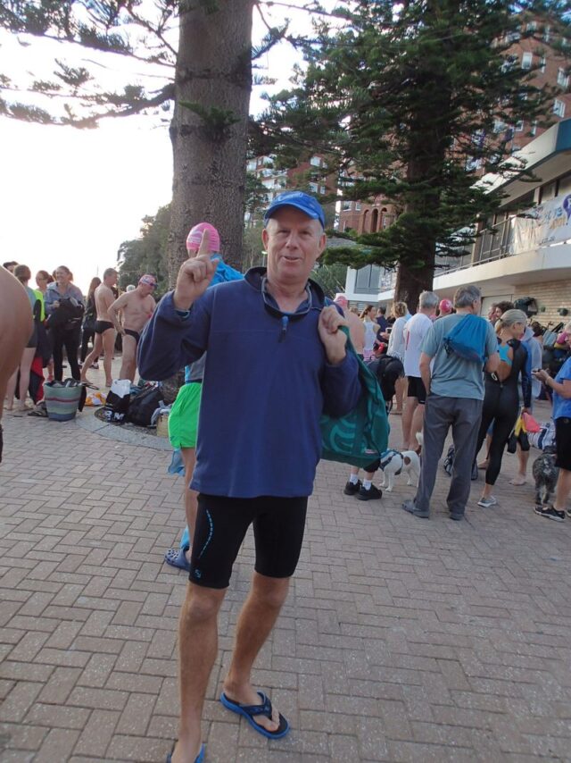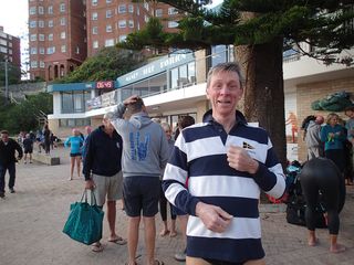 At Shelly Beach, a further exclusive look at the Eastern suburbs (halo over Mark because he does not tick every swim!)