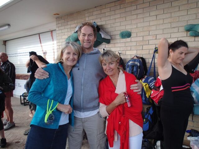 Patrick preparing for the swim part. Malyce already ready. Peta and Richard too