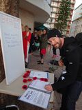 Ian, Alana, John and more. A newbie signing in among the red poppies…