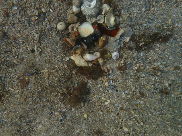 Octopus near the pool was quite antisocial – saw me diving down camera in hand, put the shell over its head and disappeared into its hole