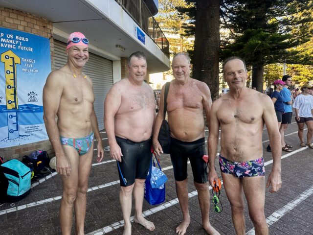 Some lovely B&B ladies – Sheena (new Manly Lifesaver putting her brilliant stamp on the First Aid practices) Janet making a welcome appearance, Jo who swims ever day and Manly Mermaid Lainey who gets up early every day to give us the conditions report. And honorary B&B lady Derek. Lesbubbles giving a helping hand and Zelenska looking ambivalent..