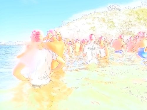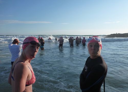 Loved the swim this morning and it really wasn’t that bad coming back through the waves although the Halfway option is best if you are nervous.I have spoken to a few people and contrary to what was said, no pink caps were rescued by life savers yesterday. We are all bold, beautiful but sensible too!