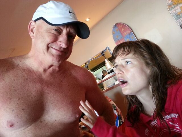 First one shows Annie trying to massage Stephen’s nipple, which he was trying to pass as a ‘bluebottle sting’. Nice try Stephen.