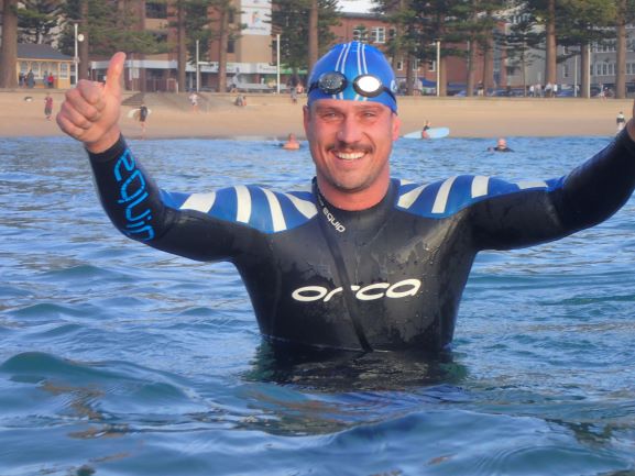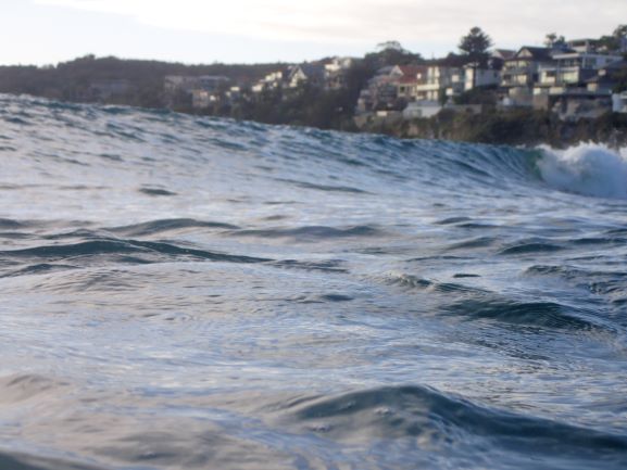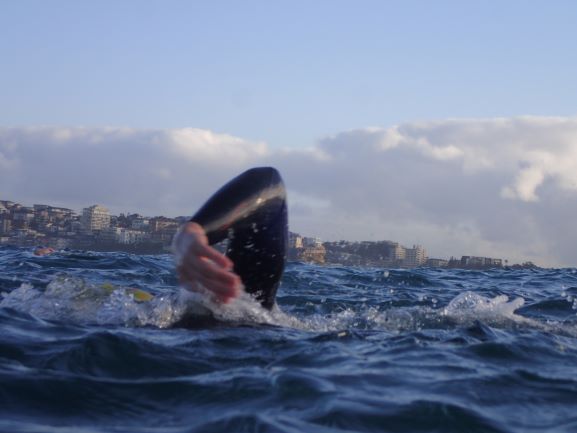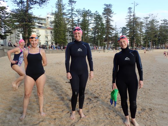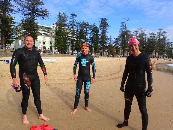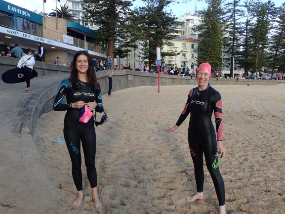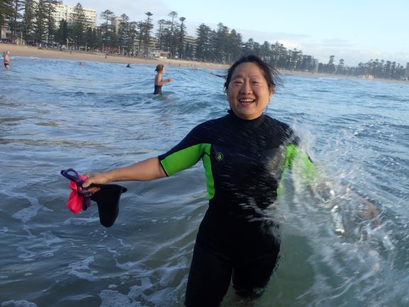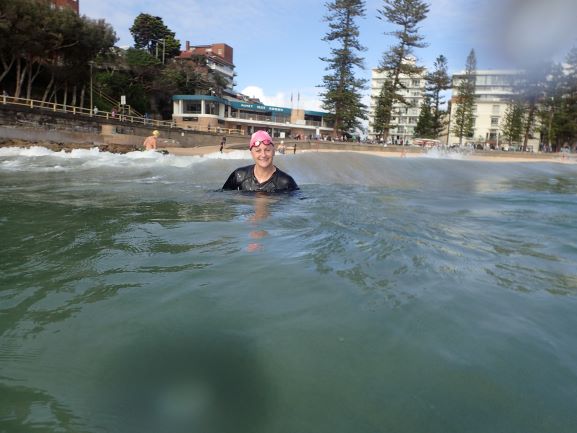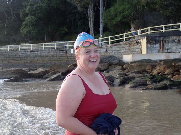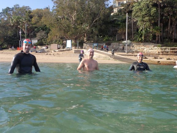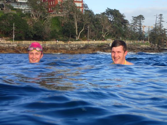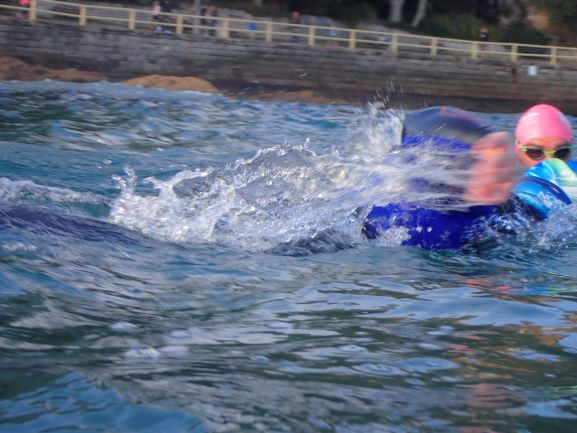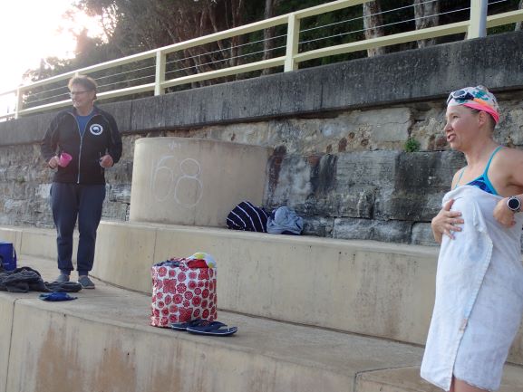 This is a photo of the swimmer who got a photo of two grey nurse sharks near the pool showing them to another swimmer. The closest I got to getting a photo of the grey nurse.