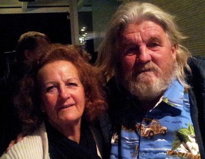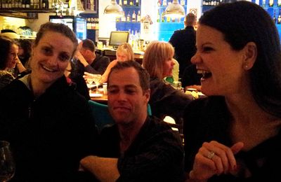 Cafe Bluewater is an electric blue at night. You can drink beer here. And sit with strangers … who welcome you. Nicola, Miles and Clair …