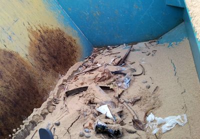 What’s the strangest thing he’s seen on the beach? “Two very, very large Islanders going for it, on the sand. My headlights hit ’em – and she got the fright of her life. But they couldn’t get up. His pants around his ankles …” He lets me photograph the tractor’s capture skip. “You should’ve got a photo on a bad day. There’s not much in there now.”