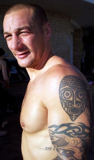 Warren’s tattoo is a Caribbean motif, which he got when visiting family there. He’s originally from Oxford, UK … but lives in Manly by the sea now. This particular tattoo is waterproof