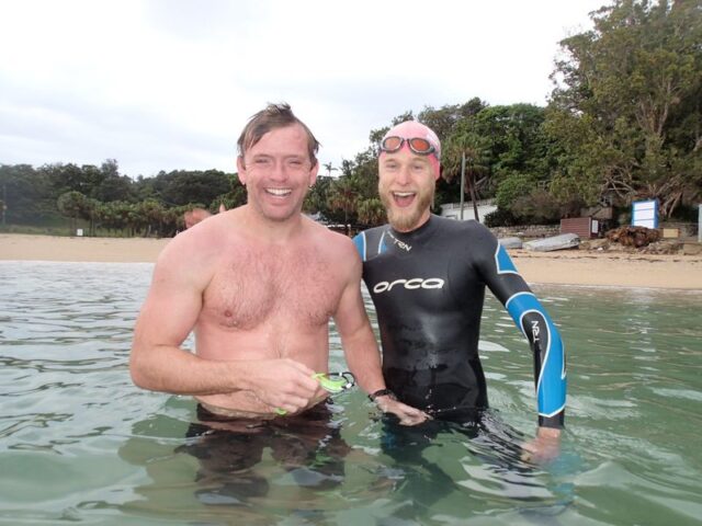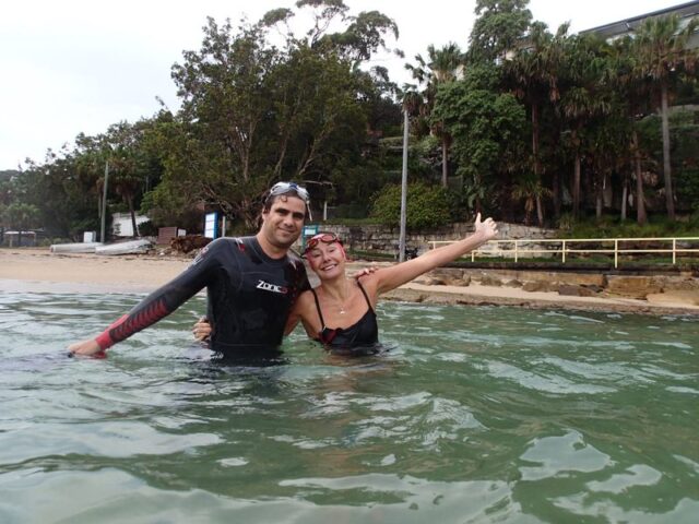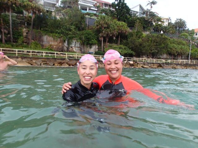 Happy birthday Zoe – having a swim with Nat in fluor orange