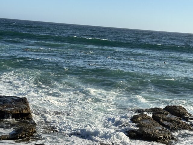 Sometimes a blog title suggests itself but sometimes swimmers come up with it. George swam through the waves today and his verdict was: “Exhausting!”