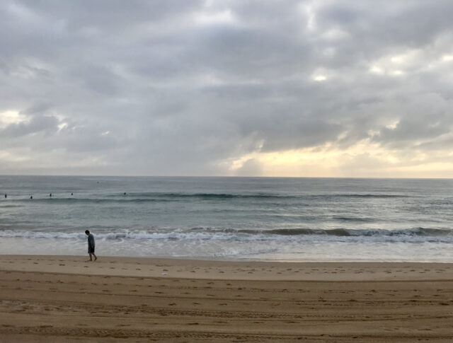 I wasn’t expecting nice conditions today due to the nor-east forecast and it was supposed to rain. I was pleasantly surprised with only pleasant waves to deal with and such crystal clear conditions. There were no blueys that I heard of but I certainly got hit by a jimble as did my fellow swimmer Peter.