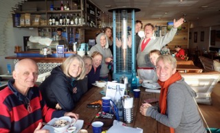 The 2 ladies near the heater have come to swim with us from Mount Martha in Victoria. They swim in 11 degrees without a wettie!