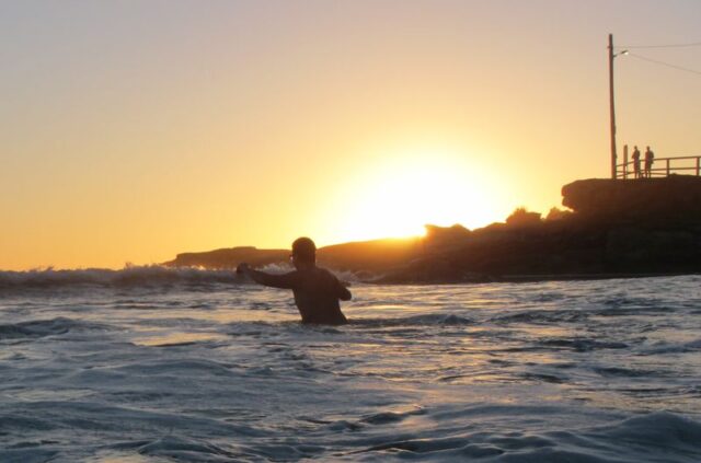 Ian also reminding us that the morning is what we make of it… By telling us we can make our way to the halfway stairs; or make our way through the waves and that gentle rip (that started a long way out in the bay)…