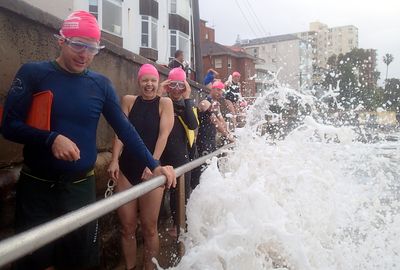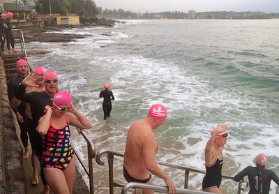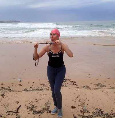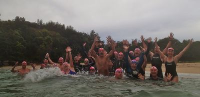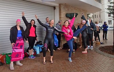 Sherry on the left is just saying, ‘If you’d have told me this last time last year that I’d be swimming through Winter without a wetsuit, I would never believe you!’ It’s amazing how so many people push themselves out of their comfort zones with our group!