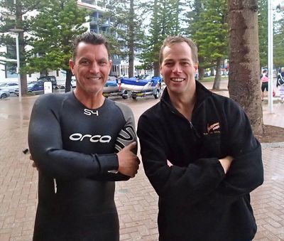 There is no stopping Chris Taylor ( Tayls). He was the last one standing last night after The Bluewater dinner and probably ended up at The Boatshed but… he was here today and came back through the surf and bluebottles! Go Tayls!