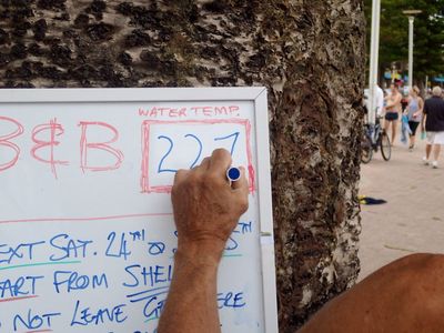 Stats – 90+ swimmers, 3 newbies, water temp 22.7, air temp 23