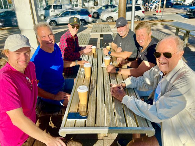 I returned to the A-Team tables @8am. Only David & Jim Bob (2nd & 3rd left) did a Shelly return swim.